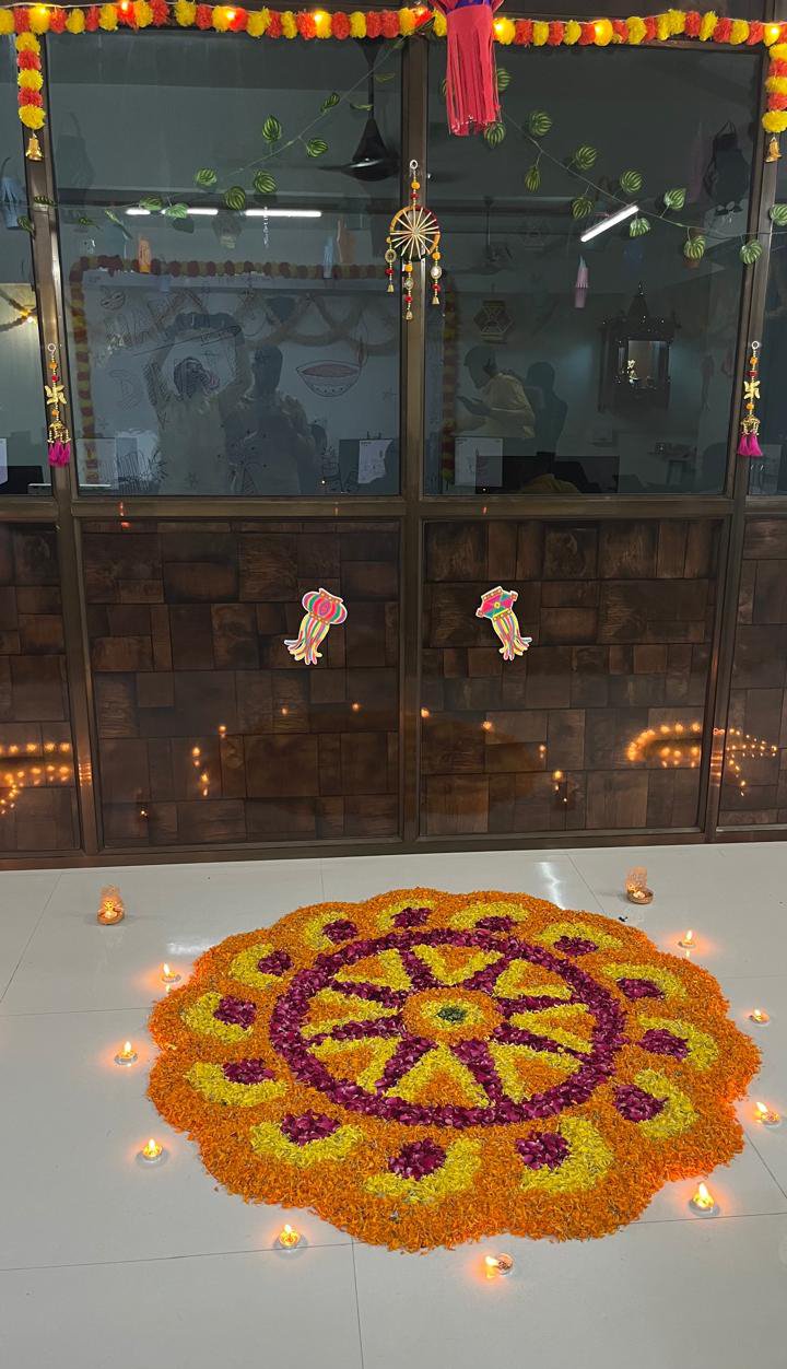 At Kautilyam, Diwali is not just a festival – it’s a celebration of light, joy, and togetherness. The entire office was beautifully decorated with diyas, colorful rangoli, fairy lights, and fresh flowers, creating a cheerful and festive vibe. Employees came dressed in traditional clothes, adding a cultural touch to the event. The day included fun and engaging activities like rangoli competitions, diya painting, ethnic wear contests, and a themed photo booth. Everyone participated with full excitement and shared lots of happy moments. Laughter, music, and colors filled the workspace, making the celebration even more lively. A delicious Diwali lunch was arranged, featuring festive sweets and traditional dishes. The celebration gave everyone a refreshing break and a chance to bond beyond work. At the end, Diwali hampers were given to all employees as a gesture of appreciation. The event truly brought the whole team together in the spirit of the festival.